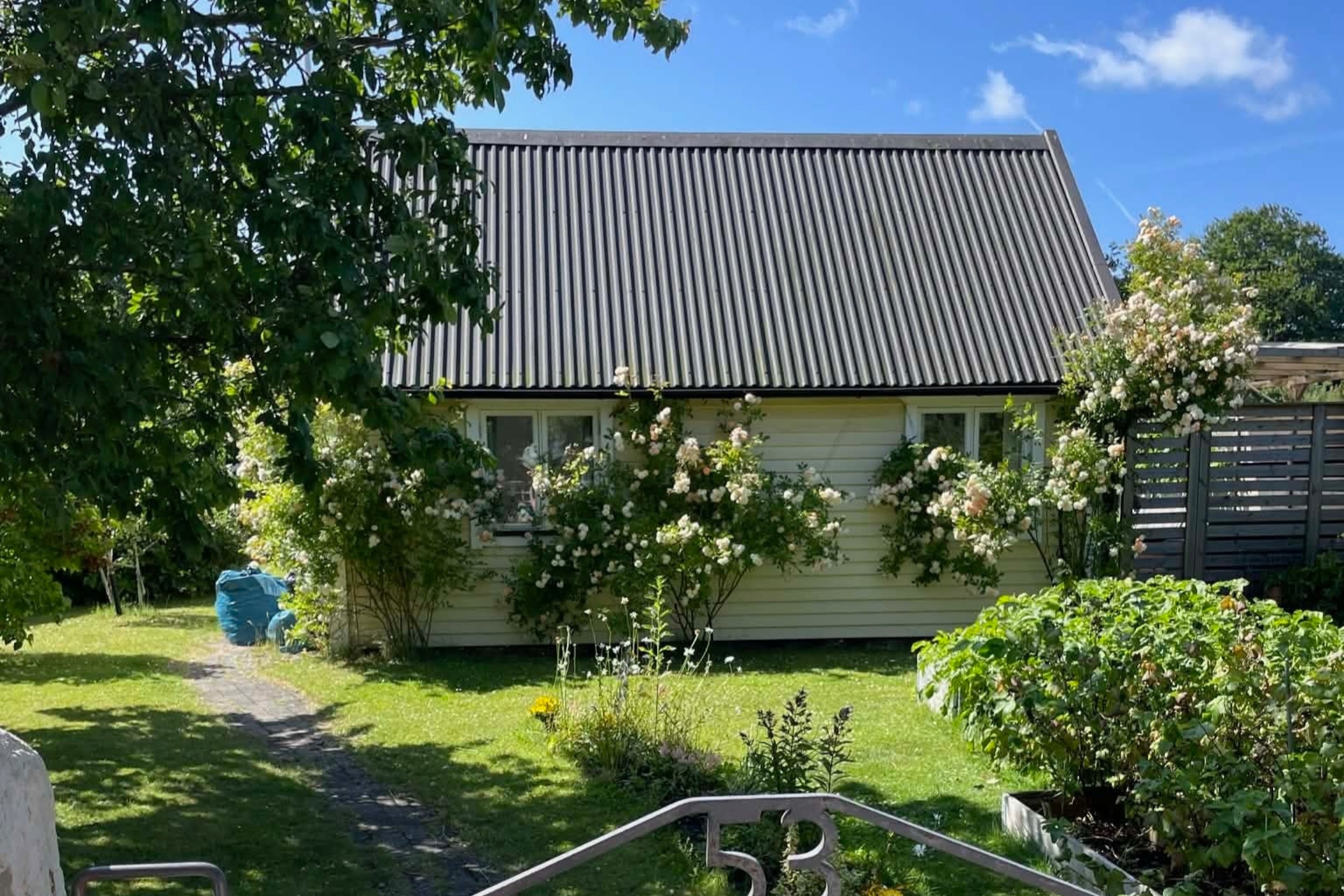 Sommaridyll i lummig grönska – charmig stuga nära havet